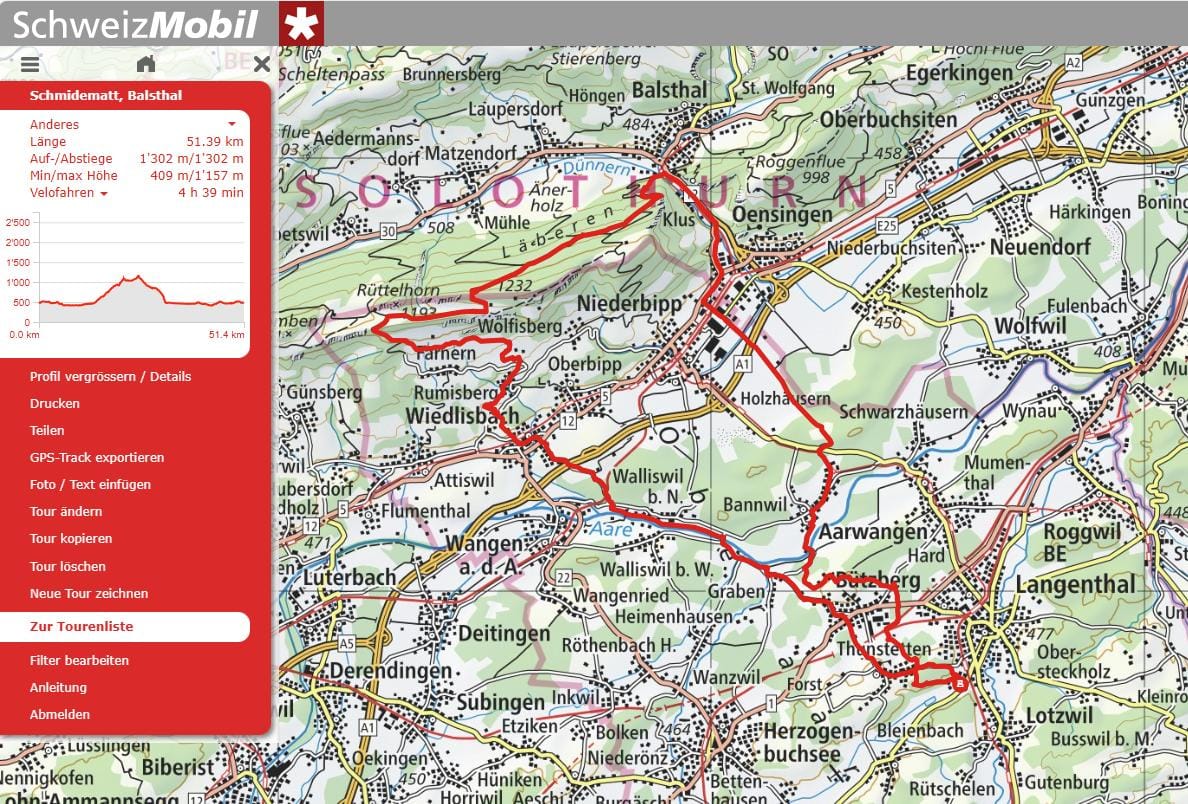 Eine sehr schöne Herbstmountainbiketour bei ca. 5 - 10 Grad und viel Sonne. Die Tour startete in Langenthal Richtung Thunstetten, Bützberg, Graben, Berken, Walliswil Bipp, Wiedlisbach, Rumisberg, Bättlerchuchi, Schmiedenmatt, Hinteregg, Balsthal, Oensingen, Rüttihof, Bannwil, Graben, Bützberg, Thunstetten und wieder zurück nach Langenthal.
